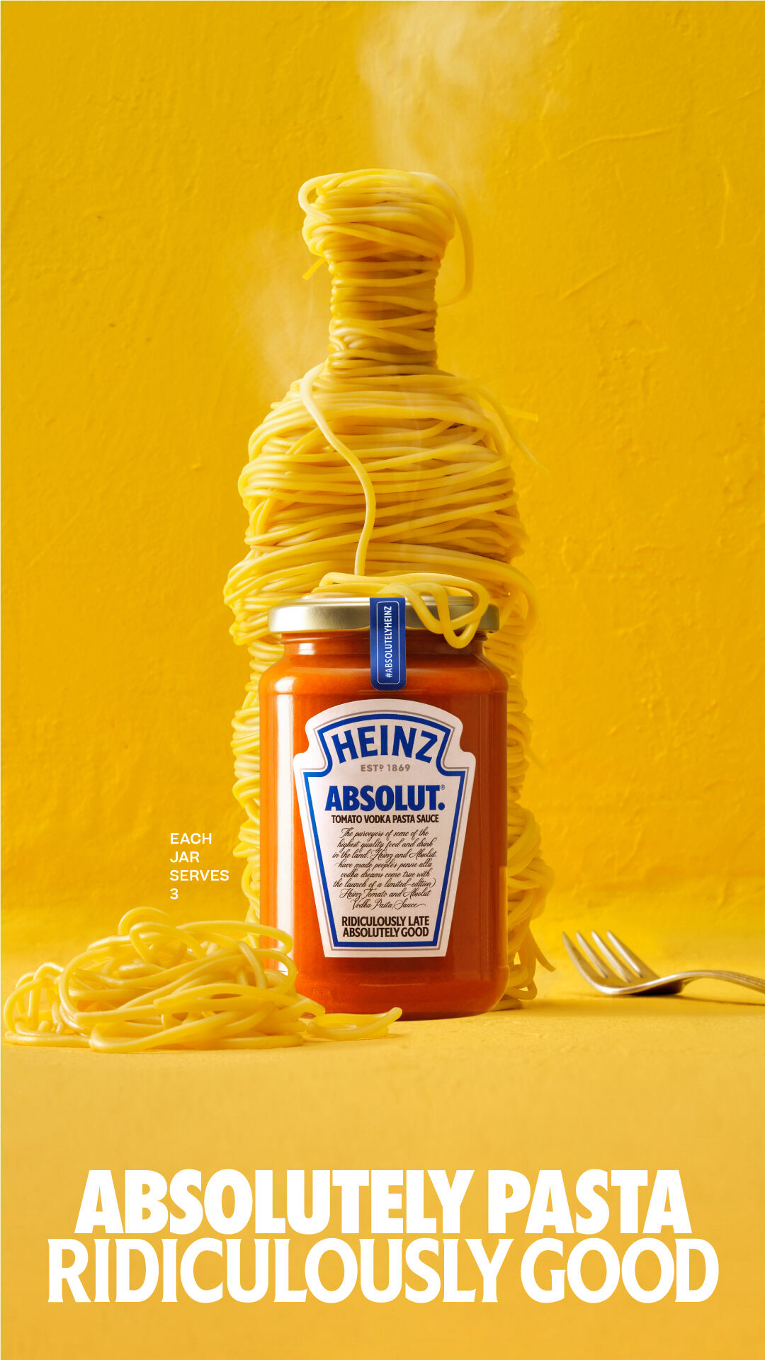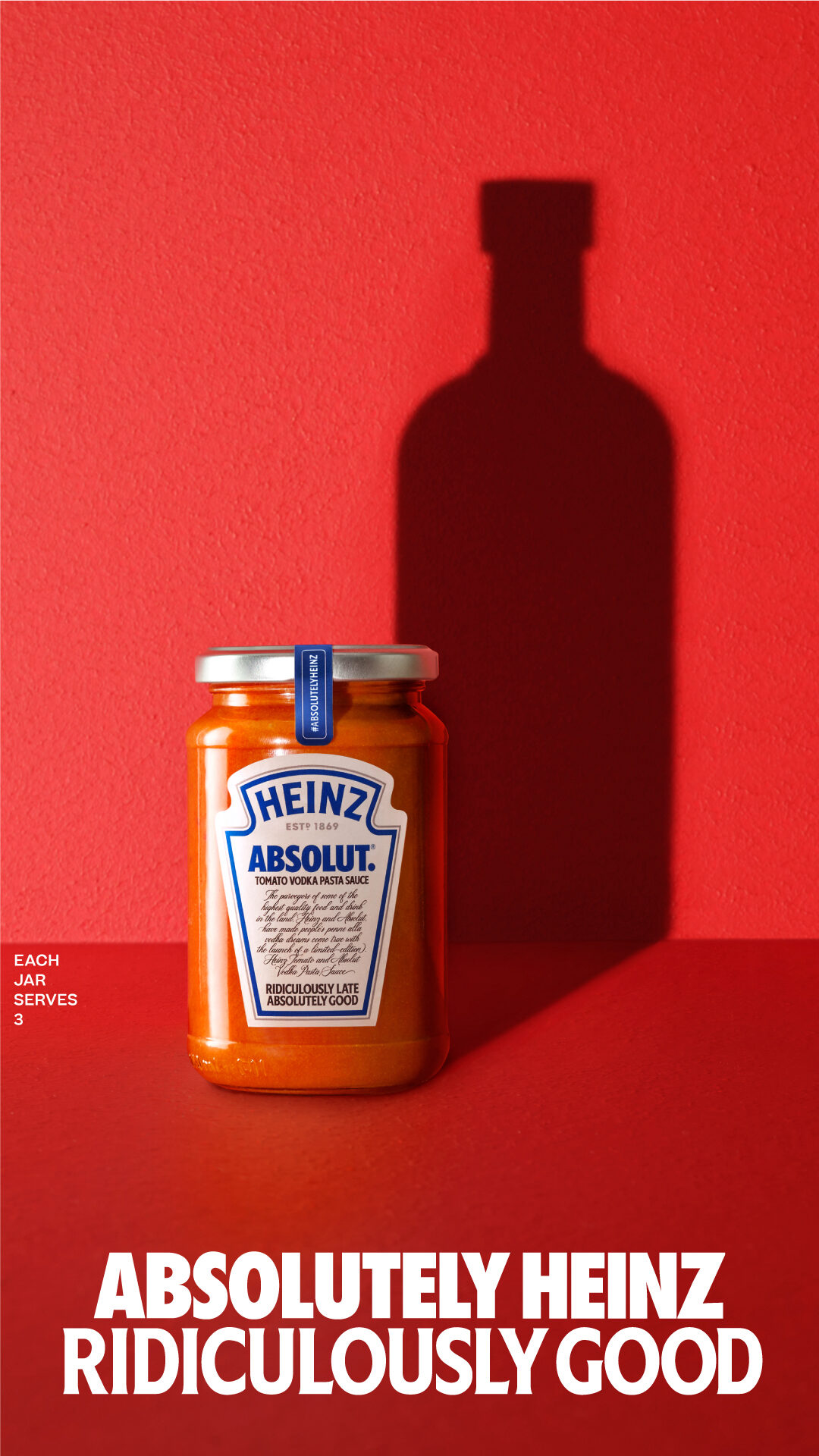Para seguir sorprendiendo al consumidor, propusimos a Kraft Heinz New Ventures crear una salsa de tomate con vodka inspirada en el "Penne alla Vodka" de Gigi Hadid, una receta de los años 80 que se hizo enormemente viral. ¿Y qué podría dar más que hablar que crear esta salsa en colaboración con Absolut, el vodka premium por excelencia? Así fue cómo se lanzó la primera salsa para pasta con vodka y tomate del Reino Unido, una alianza estratégica entre dos marcas icónicas que resultó muy beneficiosa para ambas.