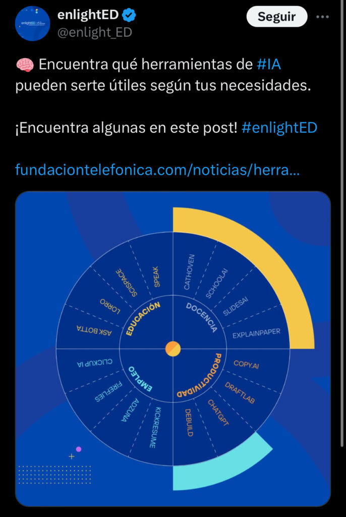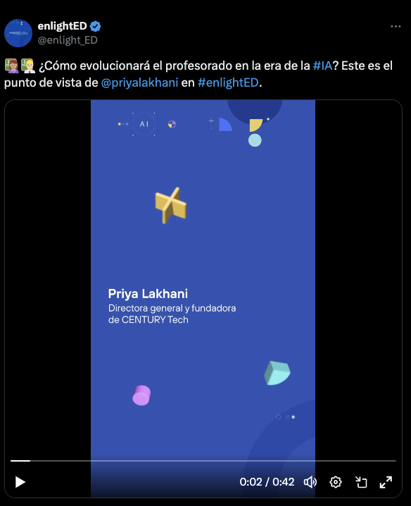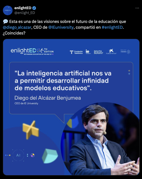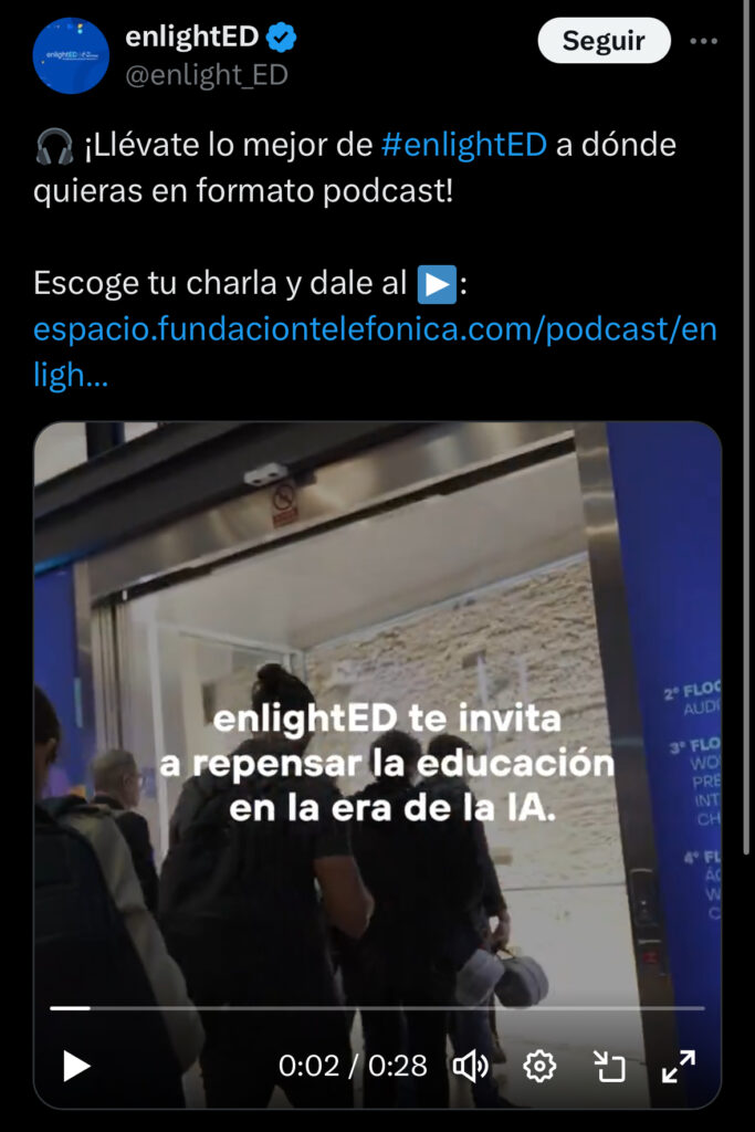 En agosto de 2023 comenzamos a trabajar en la estrategia de comunicación en redes sociales, web y boletines de la sexta edición de enlightED, la conferencia mundial de Fundación Telefónica sobre tecnología y educación. En esta convocatoria, celebrada los días 18 y 19 de octubre, el evento buscaba abordar la problemática de la IA y su impacto en el terreno educativo, a través de múltiples paneles de expertos e influencers de talla mundial que promovieron el diálogo, la reflexión y el debate.