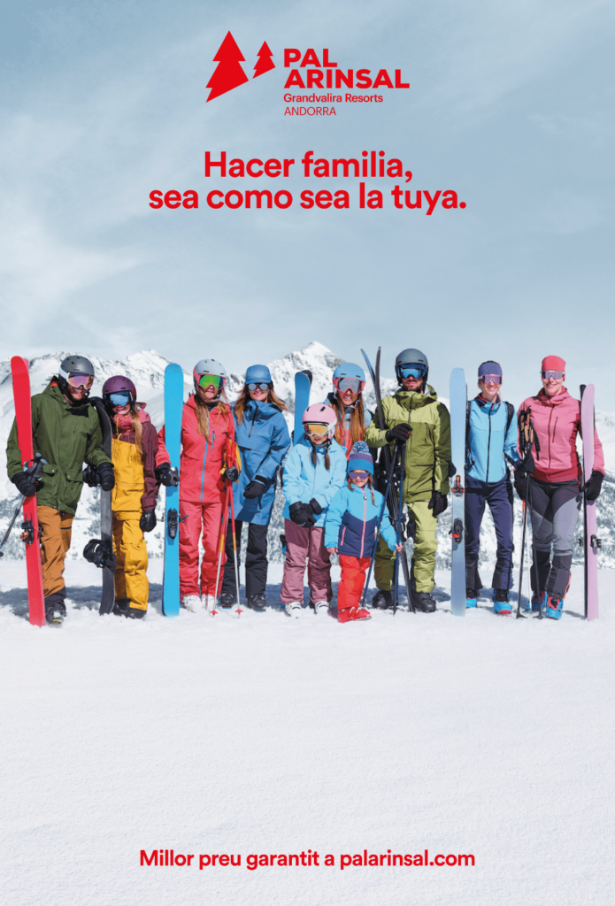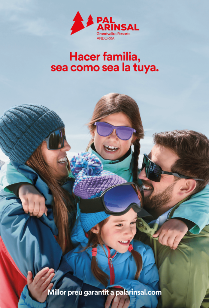 En cuanto a Pal Arinsal, evolucionamos el concepto de marca “Hacer familia, sea como sea la tuya”, profundizando en el significado de hacer familia más allá de los núcleos familiares convencionales. Partiendo de los beneficios funcionales de la estación, el sol, las actividades lúdicas que ofrece y el número de días de nieve, la campaña presenta todas esas emociones que pueden vivirse en la estación y que ayudan a crear vínculos sociales más fuertes y relevantes.