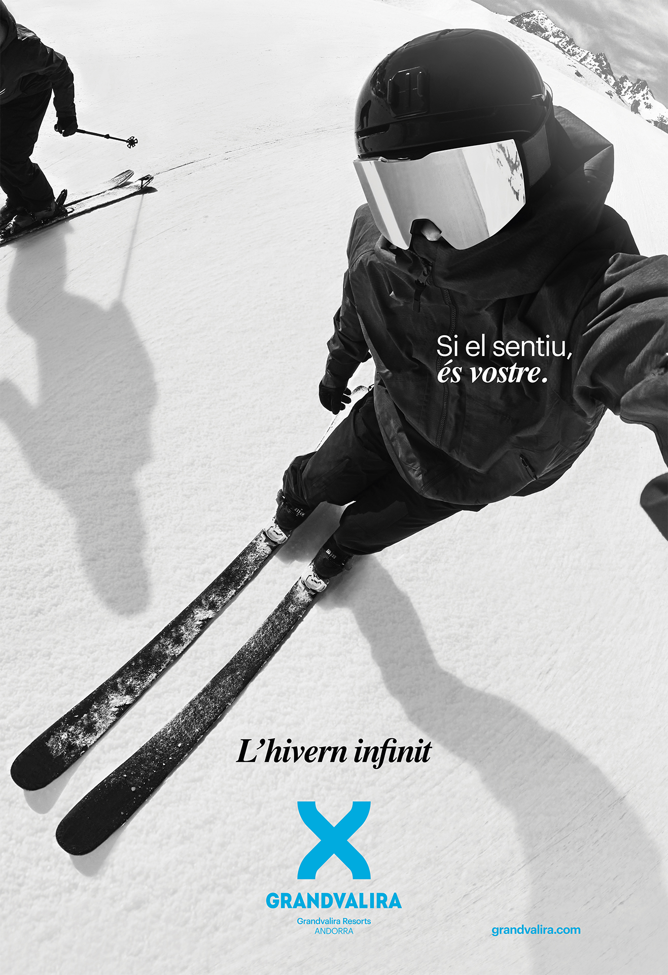 La campaña de Ordino Arcalís, por su parte, resalta la personalidad fuerte y valiente de la estación de esquí. Bajo el concepto “Indomables”, presenta el esquí como una experiencia visceral. Una campaña que parte de paralelismos entre la naturaleza y los esquiadores que se atreven a desafiarla y disfrutarla, captando el lado más primario de este deporte. Al mismo tiempo que enfatiza el contacto directo y sensorial con el entorno natural, invita a explorar y a descubrir esa conexión especial con las montañas de Ordino Arcalís.